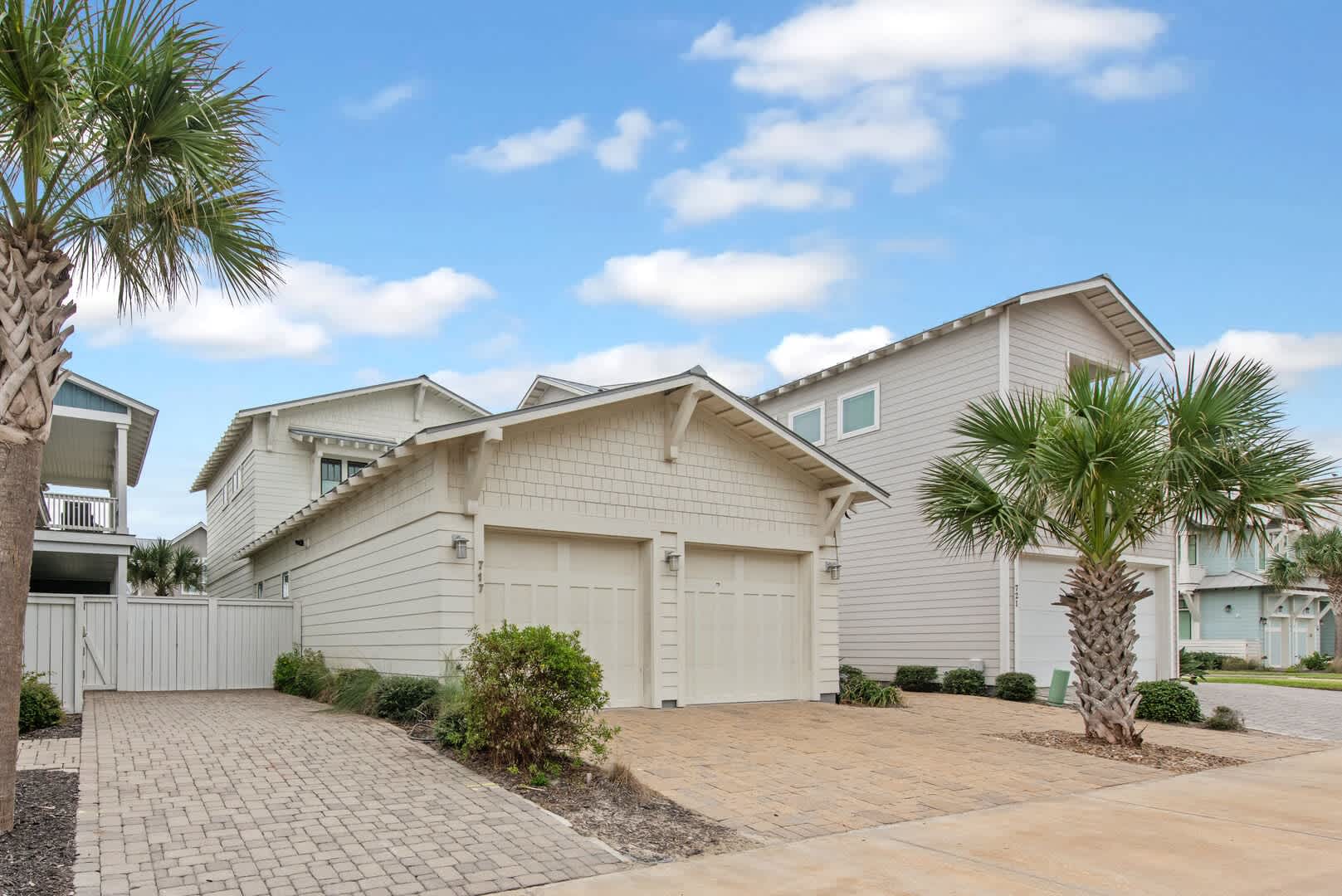 More details include a washer/dryer; outdoor shower; complimentary Wi-Fi and parking for three cars (one in the garage; and two in the driveway. A golf cart rental will use one of these spaces.)