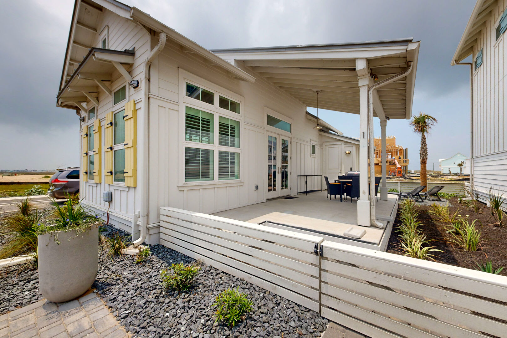 Step outside to a breezy covered porch area, complete with seating, where you can unwind with a book or simply soak in the tranquil surroundings.